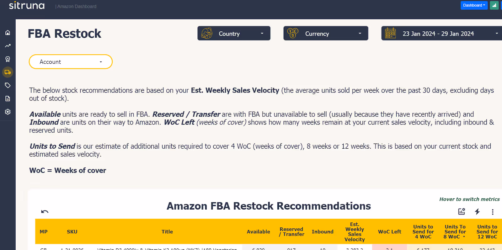 Going back to the Sitruna App, it also helps sellers establish re-order triggers based on sales velocity and lead times to ensure that you initiate reorders before running out of stock.